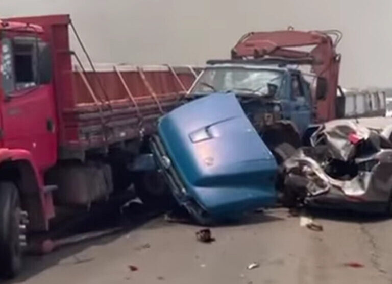Um grave engavetamento envolvendo cerca de 30 veículos foi registrado na manhã desta segunda-feira (6), no trecho da BR-135, na altura do Campo de Periz, município de Bacabeira, próximo à entrada de São Luís.