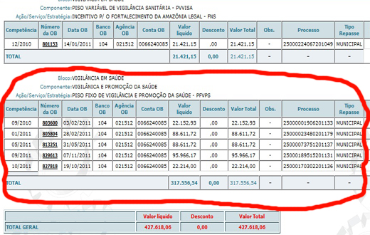 Acima as informações sobre os repasses colhidas no site do Ministério da Saúde. Qulaquer dúvida CLIQUE NO LINK abaixo e confira: