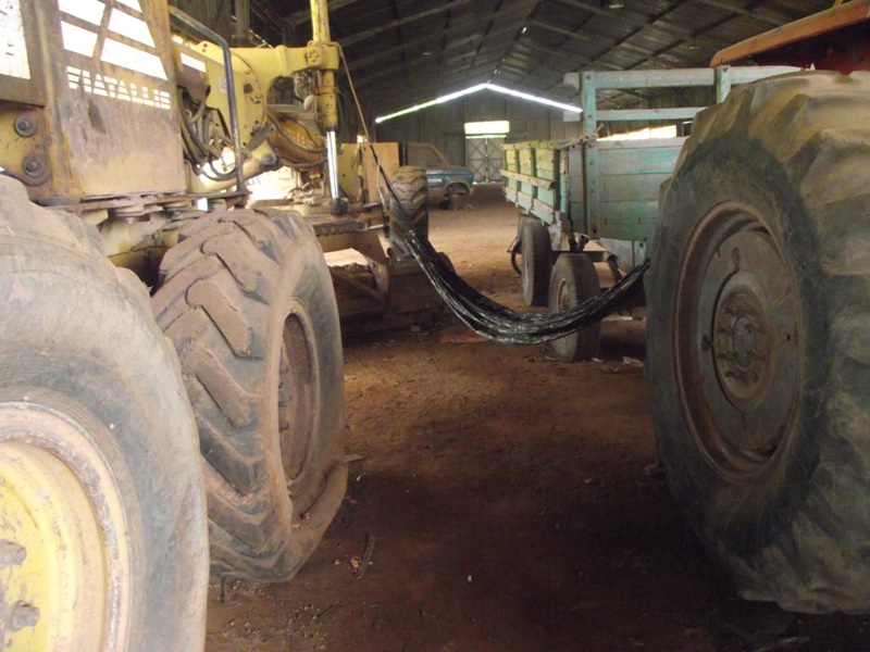 Próxima parada no galpão da antiga CIBRAZÉM onde atualmente funciona uma serraria particular e um “cemitério” de carros dmunicípio. A patrol da prefeitura estava sem o motor. Clique nas fotos para ampliar.