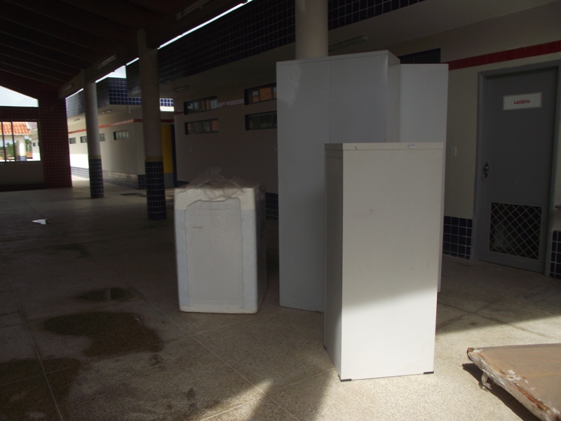 A segunda foi na Creche do Bairro Cibrazém que ainda está em construção. O secretário, que estava acompanhado de alguns amigos e assessores ficou estarrecido com o estado de abandono de alguns equipamentos. Geladeiras, freezers, fogões e colchões ainda lacrados foram jogados do lado de fora do prédio. Em outras salas um enorme quantidade de equipamentos que eram para estar servindo à criançada do município. O que mais impressionou Juan Torres foi encontrar a planta da obra da creche jogada no lixo e molhada pelas águas das chuvas.